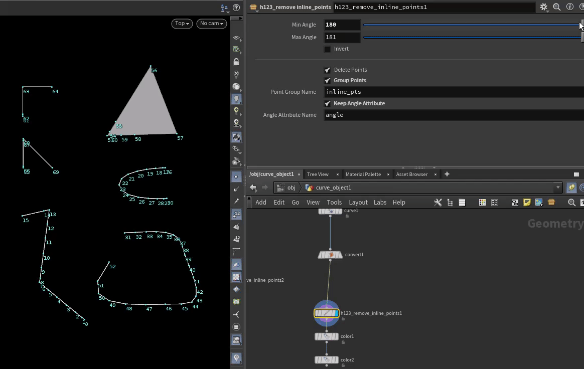 A tool that removes points based on their angle. Designed to work with curves/lines. Not geometry.